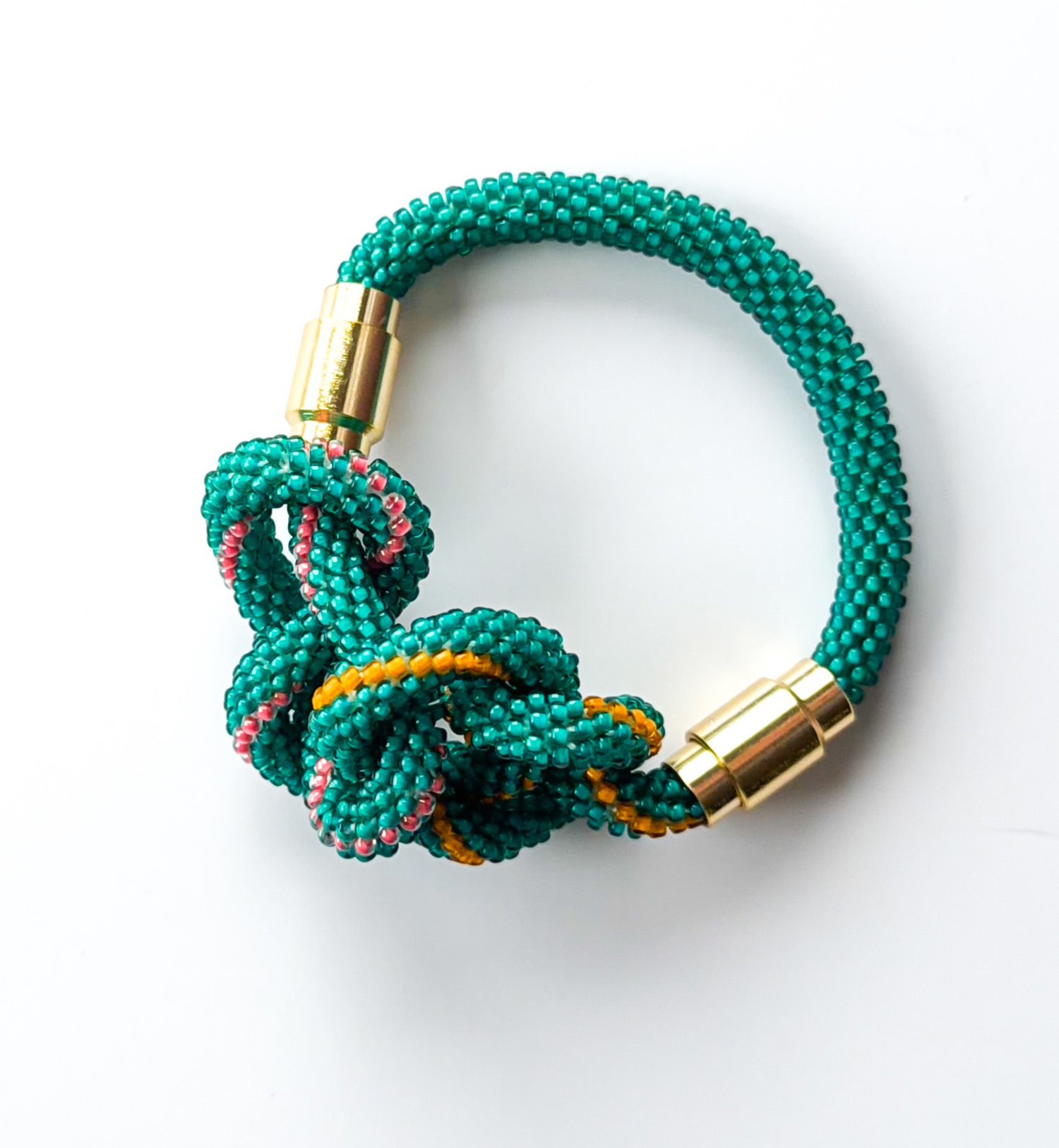 The Figure-Eight knot makes a striking bracelet statement, anchored with a Mini connector.